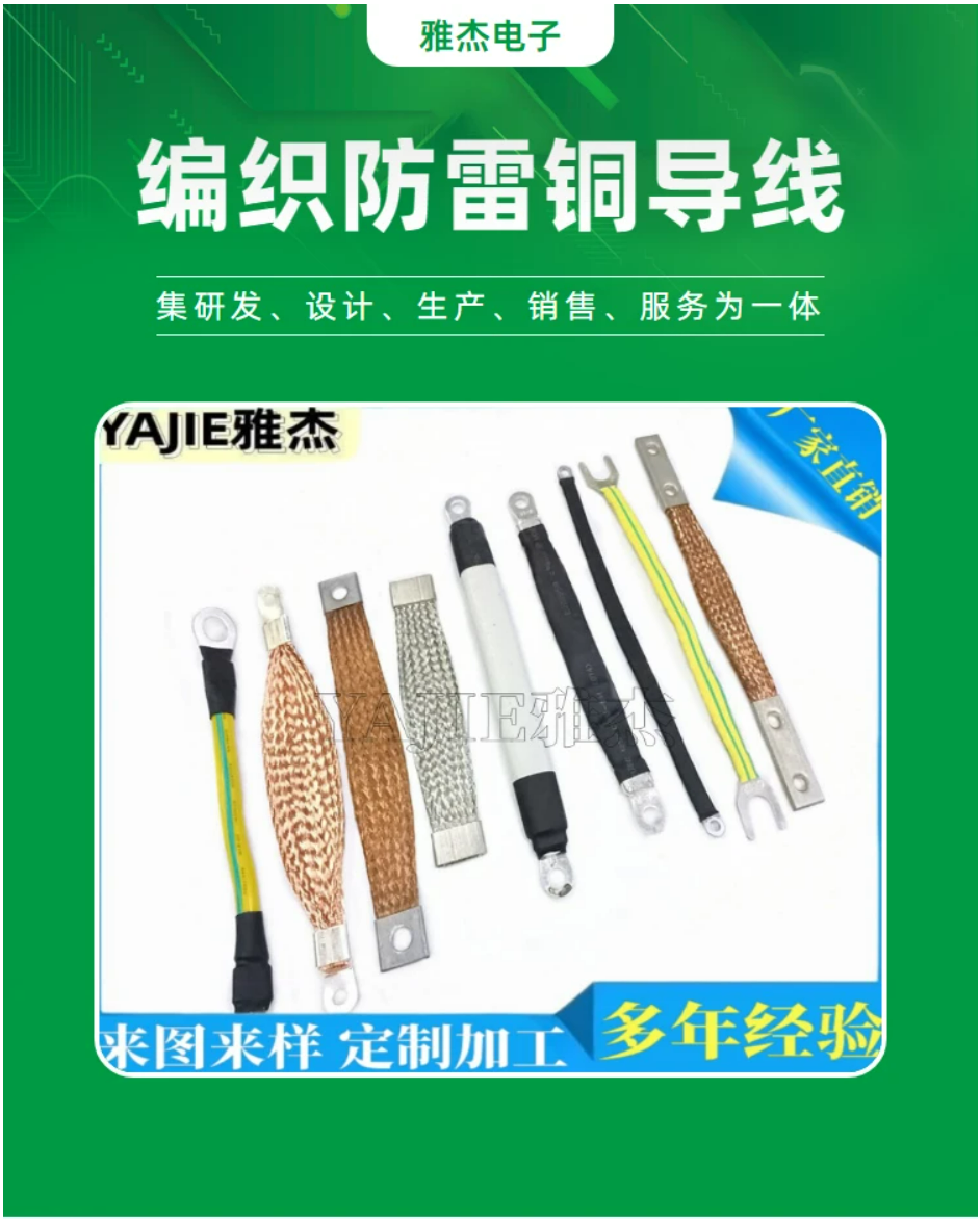Dongguan Yajie Company is specialized in the production of (copper flexible connections)(copper braided wires)(copper stranded wires)(copper brush wires)(expansion joints)(copper wires;)(Copper braided tape)(Copper conductive tape)(Copper bar)(Tinned copper braided tape)(Aluminum conductive tape)(Epoxy coated copper bar)(Plastic-sprayed conductive copper bar)(Battery soft copper bar)(Stainless steel braided tape)(Ground soft connection)(Flange electrostatic jumper wire)(Copper foil soft connection)(Copper sheet soft connection)(Copper woven mesh)(Copper shielding mesh)(Braided copper tape)(Braided copper wire)(Braided soft connection)(Conductive woven woven tape)(Conductive soft connection)(Lightning protection copper wire)(Copper bus soft connection)(Copper bus soft connection)(Copper wire braided tape)(Copper ground wire)(Copper grounding braided wire)(copper grounding soft connection)(copper bar soft connection)(copper stranded wire soft connection)(stainless steel braided wire)(aluminum braided tape)(aluminum conductive tape)(aluminum soft connection)(copper-clad aluminum braided tape)(copper-clad aluminum braided tape)(copper-clad steel braided tape)(copper-clad steel braided wire)(ground wire)(gas-liquid filter)(flange electrostatic jumper wire)(vapor-liquid filter) Crochet wire mesh)(metal wire mesh)(Shielding wire mesh)(glass fiber sleeve)(Silicon sleeve)(glass fiber sleeve)(self-extinguishing tube)(inner fiber outer rubber sleeve)(insulating sleeve)(heat shrink tube)(PVC sleeve)(electrical sleeve) and other products. The copper weaving series is used in high and low voltage electrical appliances, vacuum appliances, high and low voltage switchgear, new energy vehicle batteries, bus ducts, transformers, electroplating tanks, welding machines, automobiles, electric locomotives, electric furnaces, mining explosion-proof electrical appliances, generator sets, soft connection of carbon brushes and wires, etc. The insulating sleeve series is mainly used in electronics factories, lighting factories, motor factories, electric machinery factories, and electrical equipment factories to provide insulation, high voltage resistance, protection, high temperature resistance and flame retardant effects. The company adheres to the business philosophy of "customer first, forge ahead" and adheres to the principle of providing high-quality services to our customers. Welcome to visit! -
